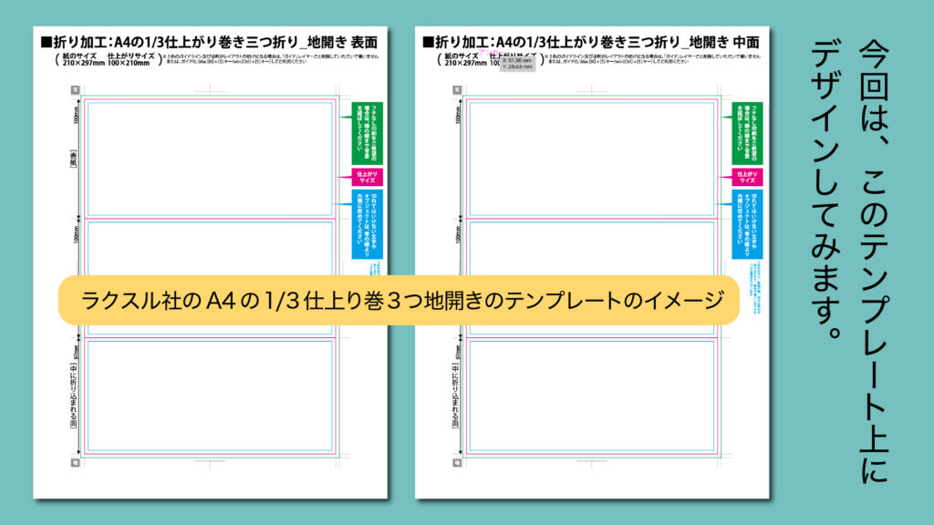 まず、巻3つ折りのテンプレートをダウンロードしてみましょう。次回は、このテンプレート上にMEGMIL教室の宣伝を制作していきます。乞うご期待!